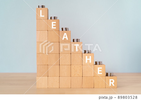 革のイメージ|「LEATHER」と書かれた積み木とコイン