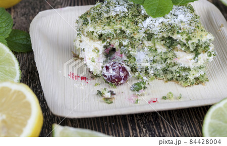 green cake with cream and lime