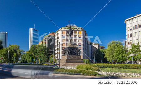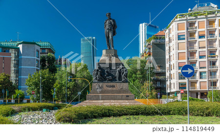Statue of Giuseppe Verdi, in the front of Casa Verdi timelapse hyperlapse Milan, Italy