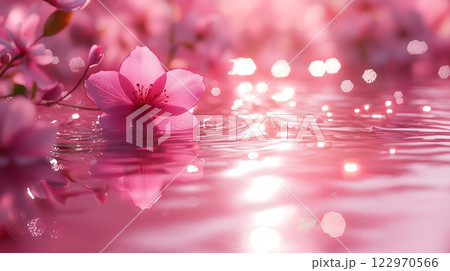 切ない光に包まれる桜の花と水のハイパーリアリスティックな一瞬