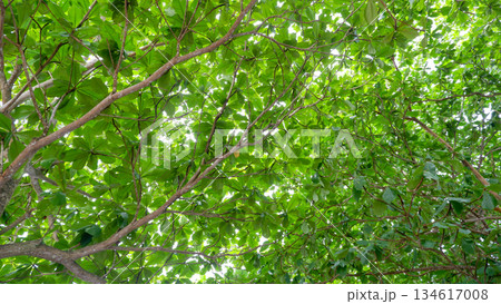 Tropical Forest Canopy with Lush Green Leaves and Branches
