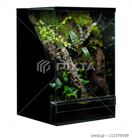 A vibrant and self-contained terrarium ecosystem, featuring diverse plant species and rich soil, encased in a glass structure