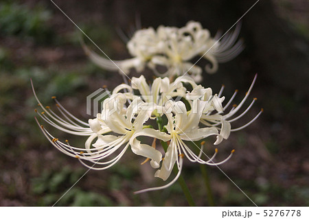 観光名所巾着田の曼珠沙華バックの白花彼岸花