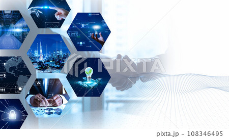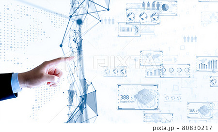 デジタルの世界で成功したビジネスリーダー、DX サイバーセキュリティ、インターネット安全のイメージ