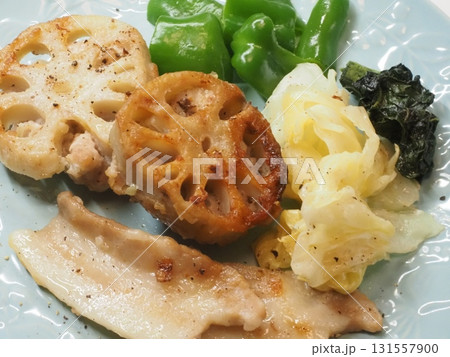 れんこん肉詰め、妻の手作り家庭料理、家庭で楽しむ夕ご飯、幸せ家族