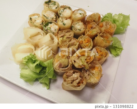 えびと野菜の手作りはるまき、妻の手作り家庭料理、家庭で楽しむ夕ご飯、幸せ家族