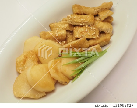 やまいもとお揚げさんの甘煮、妻の手作り家庭料理、家庭で楽しむ夕ご飯、幸せ家族