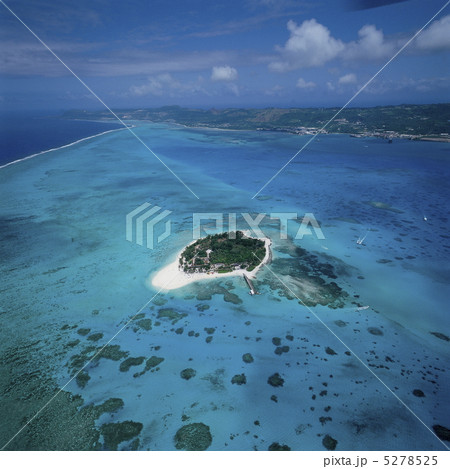 南の島のリゾート空撮 サンゴ礁に囲まれた無人島 サイパン・マニャガハ島