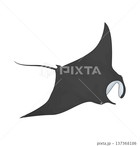 Manta ray or stingray illustration drawn by one line. View from above. Minimalist style vector illustration