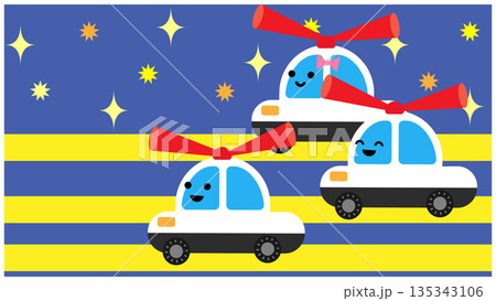 かわいいパトカーが出動する子ども向けキャラクターイラスト