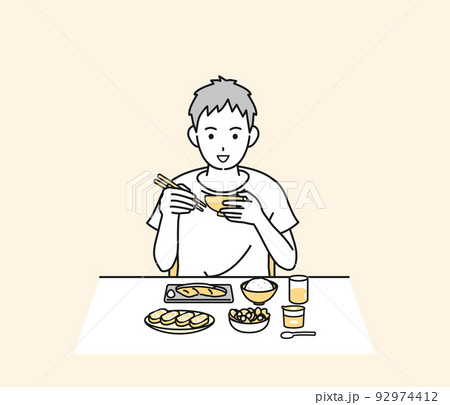 食生活 朝食を食べる 男性 健康的な食事 自炊 イラスト