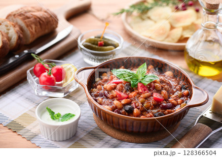 具だくさんチリコンカンと彩り豊かな洋食テーブル