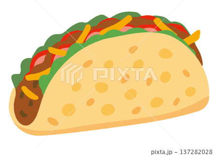 野菜や肉がたっぷりの出来立てのタコスの手描き水彩イラスト