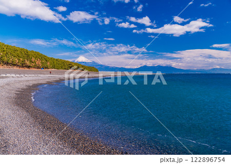 静岡県静岡市 人気の景勝地 三保の松原から望む晴天の富士山