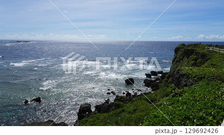 エメラルドグリーンの海に突き出す東平安名崎(宮古島)