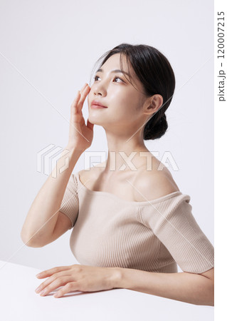 beauty concept photo of korean asain beautiful woman holding a crystal and closing her eyes