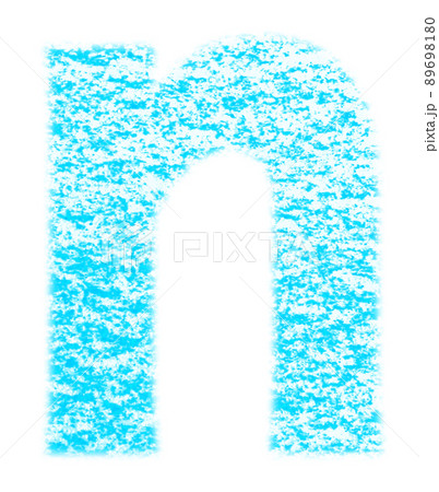 クレヨンで描かれたアルファベット n 小文字 水色 背景白 高解像度 パス付 他色有り