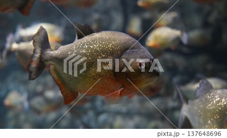 Red Bellied Piranha School Underwater Predator Fish Photo