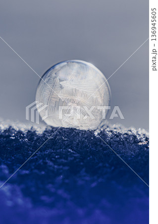 氷の結晶が閉じ込められた氷玉のマクロ写真