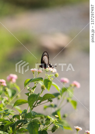 小さな野の花にとまる蝶|柔らかな自然の背景