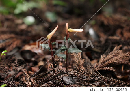 雑木林などの樹間の開けた場所に群生してアマドコロに似た花を咲かせるホウチャクソウ