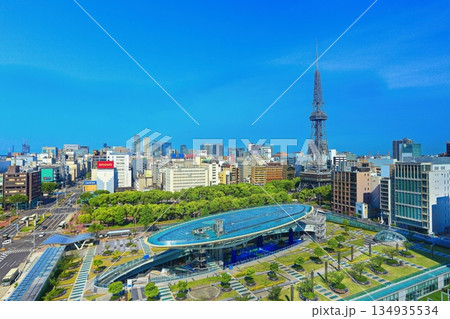 愛知県名古屋市 快晴の名古屋の街並み 名古屋テレビ塔とオアシス21