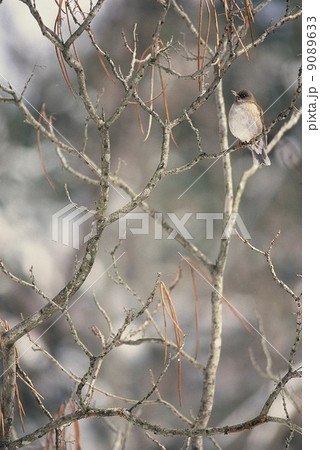 冬の木の枝にとまるシロハラ