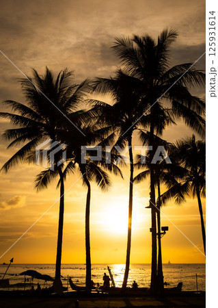 ワイキキビーチの夕暮れの美しい風景