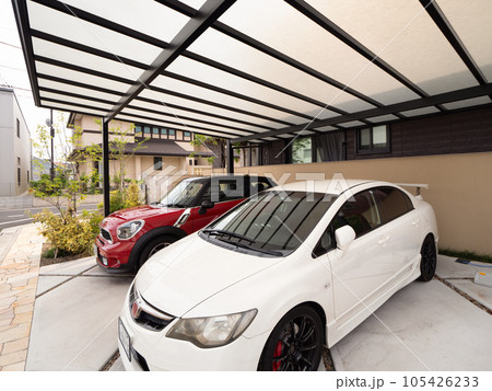 カーポートのある住宅と自動車