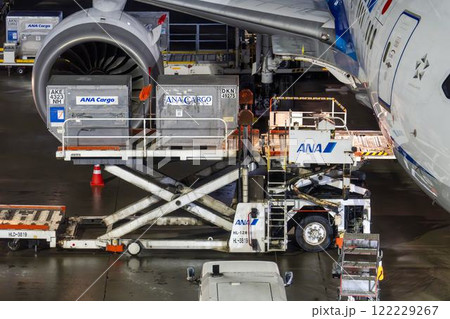 夜の新千歳空港 ハイリフトローダー 北海道千歳市