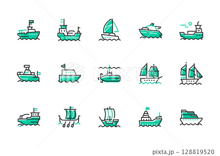 Water transport - set of line design style icons