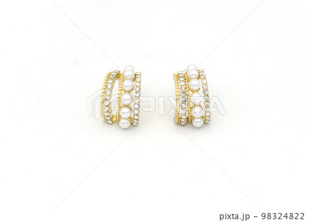 Elegant earrings, a pair of luxury earrings on white isolated background. Accessory earrings for women.