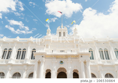 facade of city hall in george town, penang,