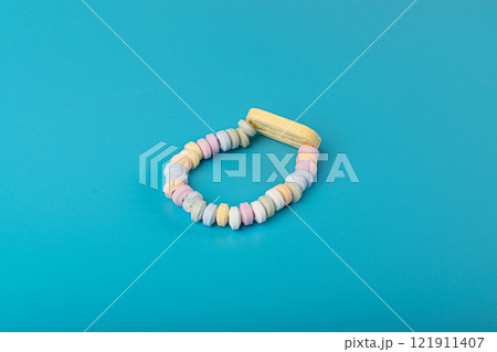 Tablet Candies on Blue Background, Compressed Tablets