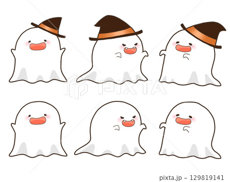 筆ブラシで描いたハロウィンおばけ/表情違いアイコン素材(白背景)