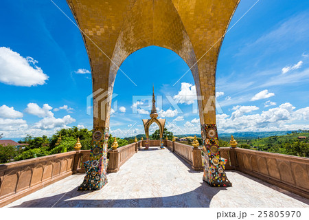 Wat Phra That Pha Son Kaew, wide view with mountain views and sky when it's cloudy. It is a popular destination for tourists.