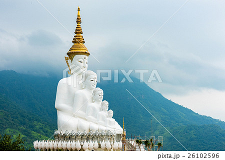 Five white Buddha image in Phetchabun, Thailand.