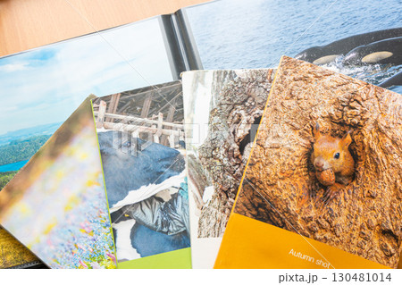 stack of printed products, close-up photo books, blank covers