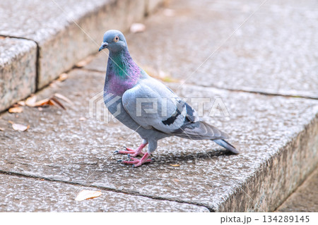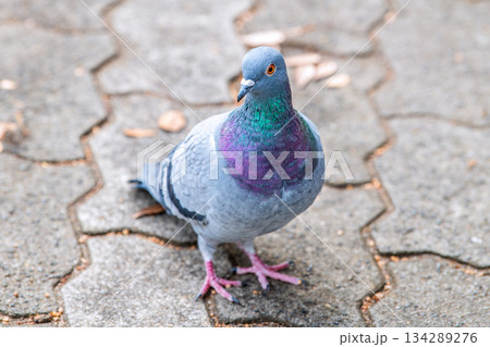日本の横浜都市景観 都会暮らし・街中の鳩…エサ探し…=横浜市内(横浜市都筑区)