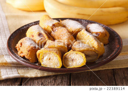 Fried bananas sprinkled with powdered sugar