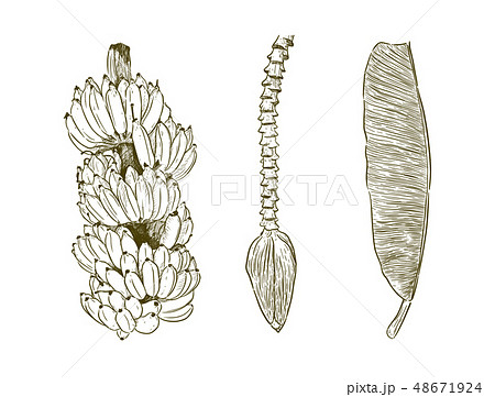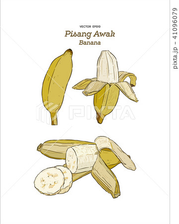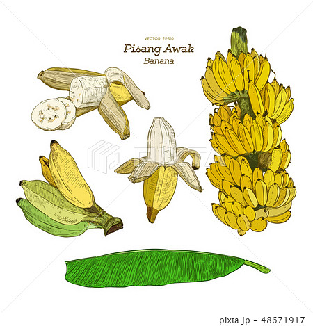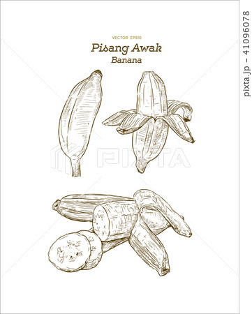 Set of Pisang Awak banana, hand draw sketch