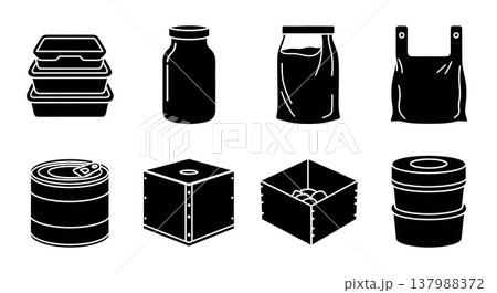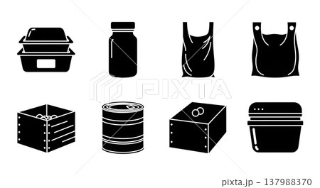 Black Solid Kitchen Food Storage Silhouettes Set of Six on White Background