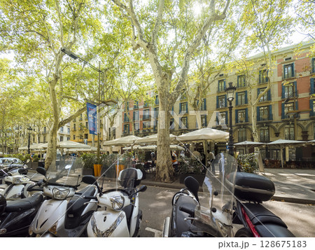 バルセロナ・木漏れ日の降り注ぐランブラス通り La Rambla, Barcelona, Spain