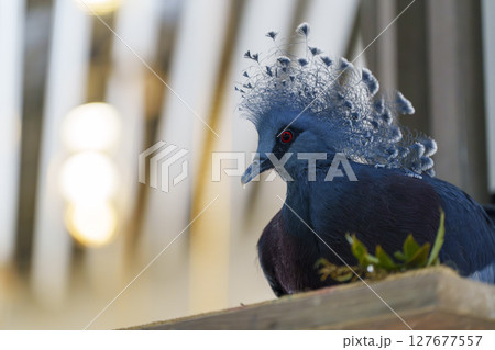 クラウンのような羽飾りを持つ美しいオウギバトのポートレート