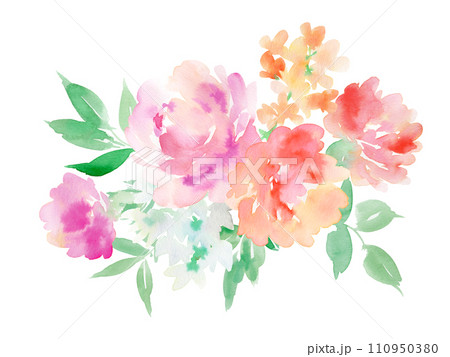 水彩で描いたカーネーションとバラのブーケイラスト素材