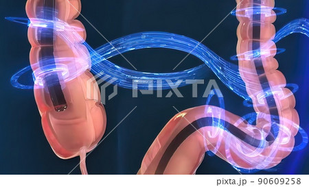 The Human Digestive System. 3D illustration of the colonoscopy Procedure