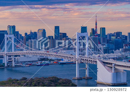 青空と早朝の神戸ポートタワー 兵庫県神戸市
