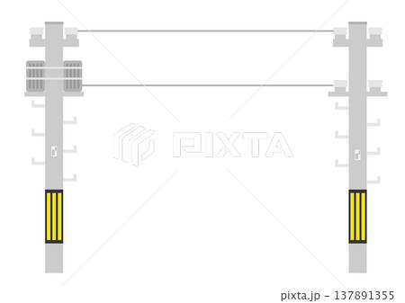 鳥害対策済の電柱と電線のフラットイラスト素材