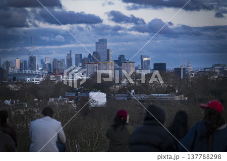 London skyline at dusk viewed from Primrose Hill
