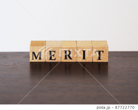 メリット(merit)と書かれた木のブロック